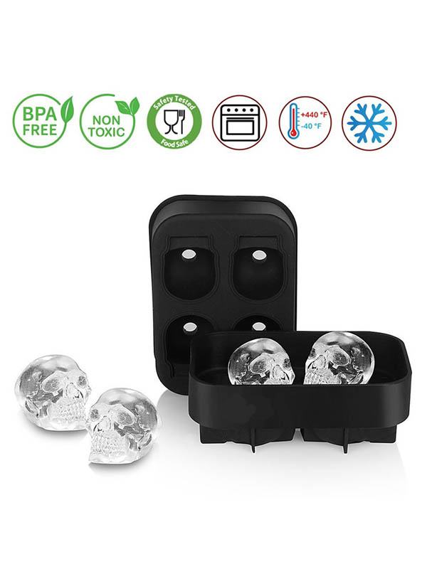 Przedstawiamy niezwykłą formę do robienia kostek lodu, która doda nieco mrocznej magii do Twoich drinków. Umożliwia tworzenie czterech kostek lodu jednocześnie, każda w kształtcie czaszki!